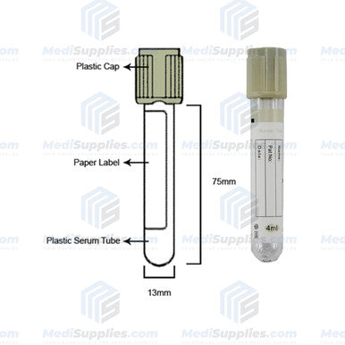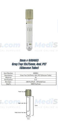 Vacuum Blood Collection Tube (Glucose Tube), 13 x 75mm, 4ml, Gray Top