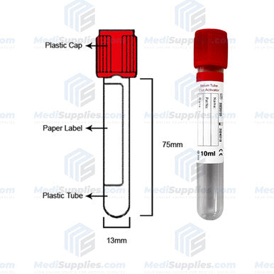 Vacuum Blood Collection Tube (Serum Tube Clot Activator), 16 x 100mm, 10ml, Red Top